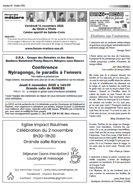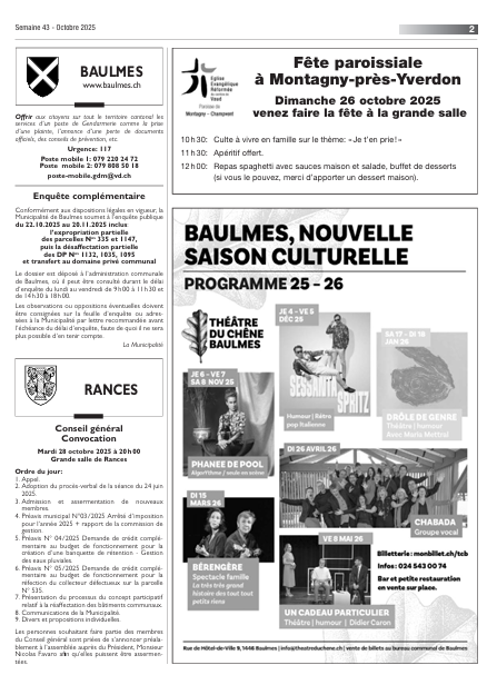 Pour toute autre information, consultez les pages de la rubrique Actuel !