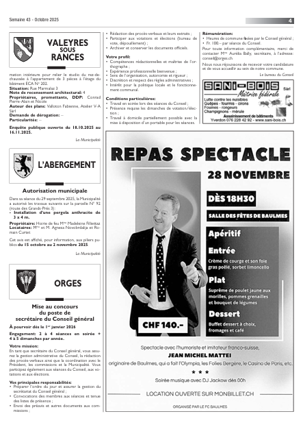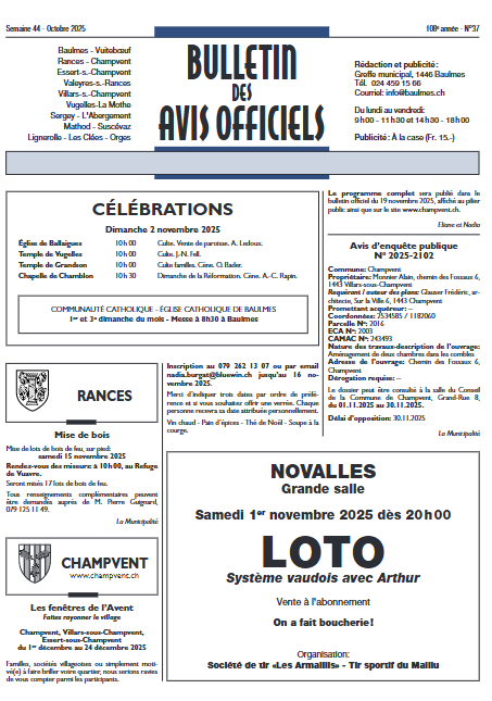 Les recrues sont attendues le jeudi 6 novembre 2025 à 19 h. 00 à la caserne principale d'Orbe.